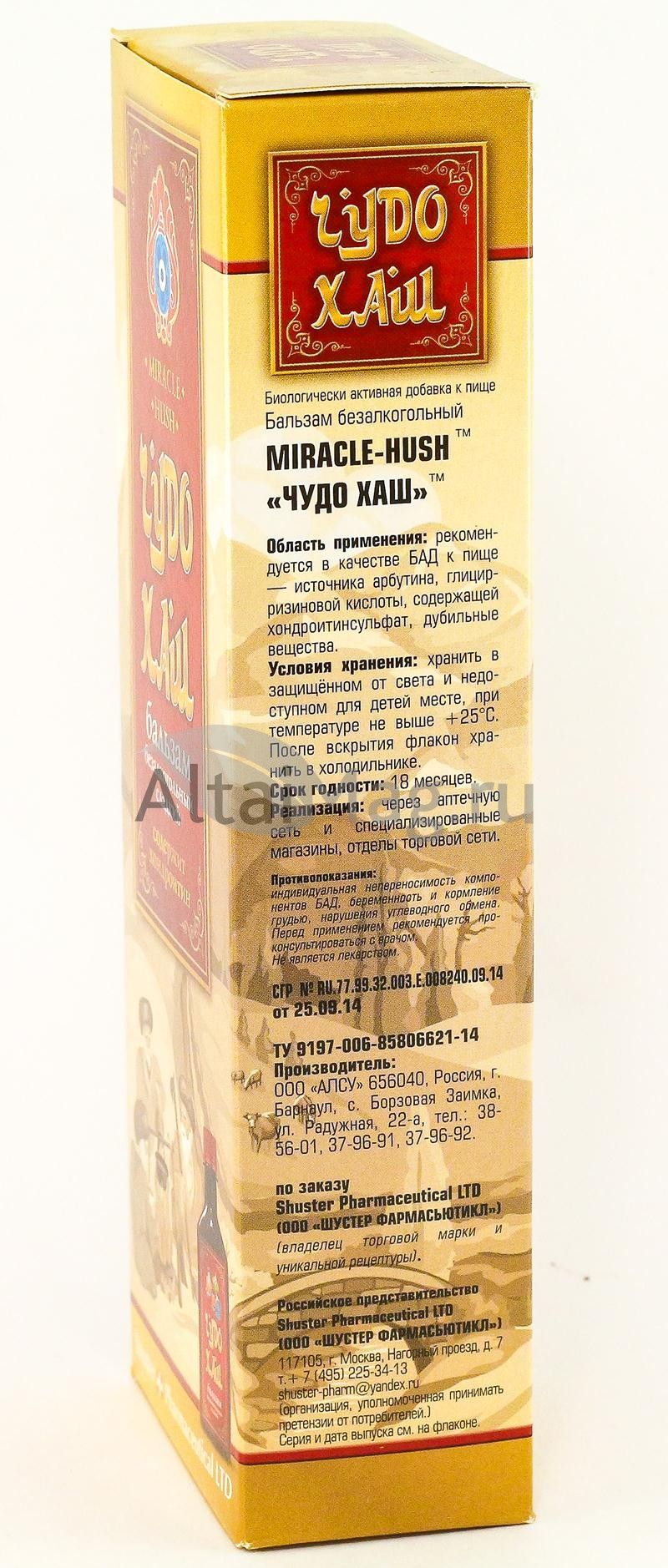 Чудо-Хаш Бальзам изготовлен методом водной экстракции растительного сырья. Алкоголь принципиально не входит в состав, поэтому в качестве стабилизатора используется оптимальное содержание сахарного сиропа. Бальзам не содержит красящих, ароматизирующих веществ.