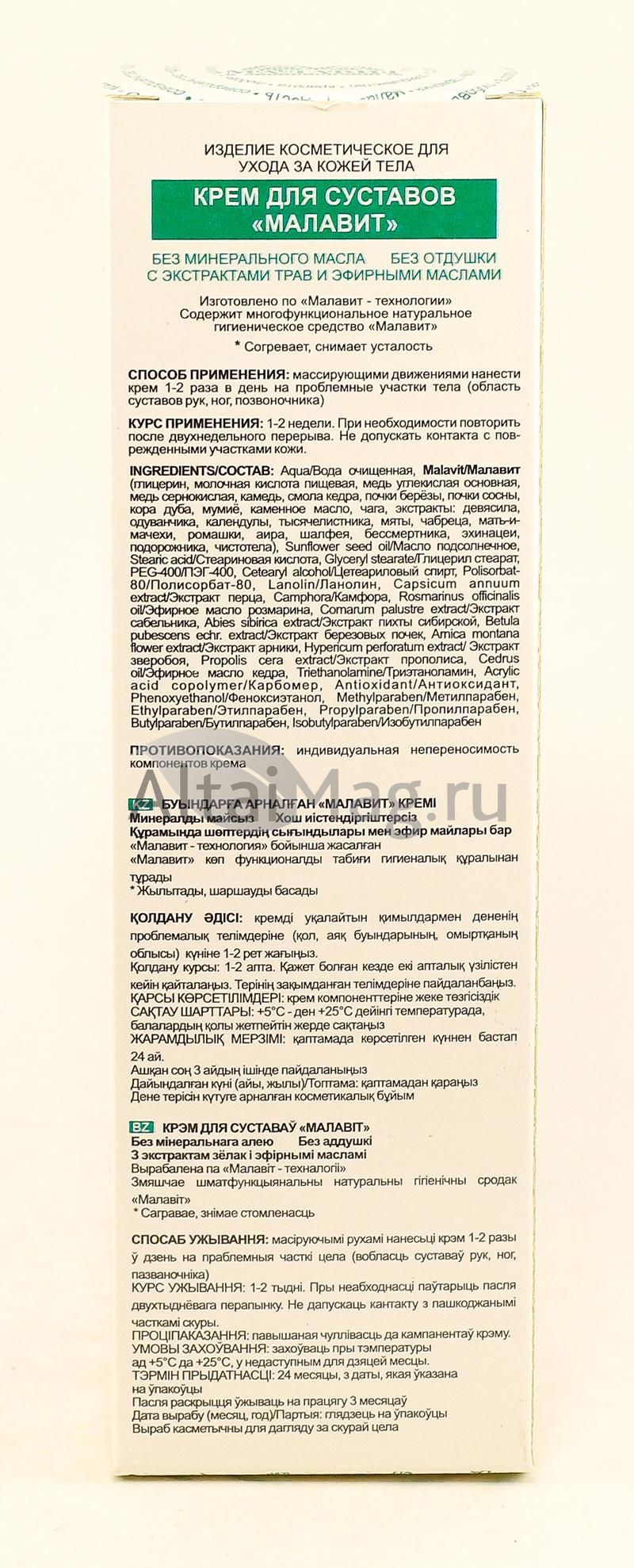 - Купите Крем для суставов Малавит 100 мл в Домодедово по доступной цене 370 ₽ с доставкой на дом или заберите Ваш заказ в Домодедово из ближайшего пункта выдачи, сделав заказ на AltaiMag.ru.