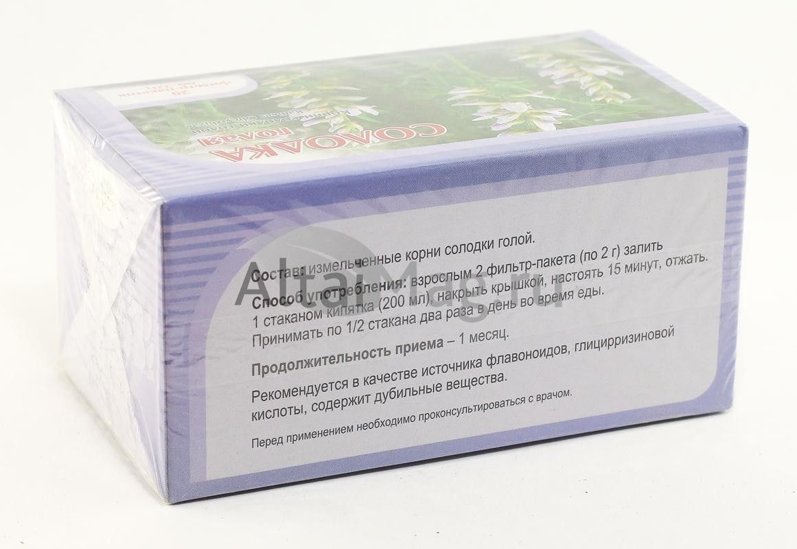 - Чтобы купить Солодка (корень), 20 пакетиков совершите всего несколько шагов: укажите количество продукта и нажмите на кнопку «Купить».