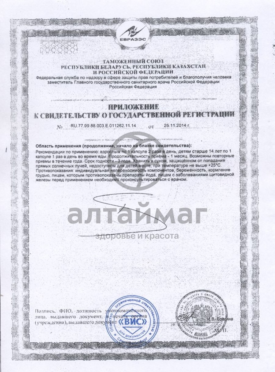 Индивидуальная непереносимость компонентов, состояния, при которых противопоказаны препараты йода. Перед применением необходимо проконсультироваться с врачом. Особые указания: Не является лекарственным средством.Условия хранения
